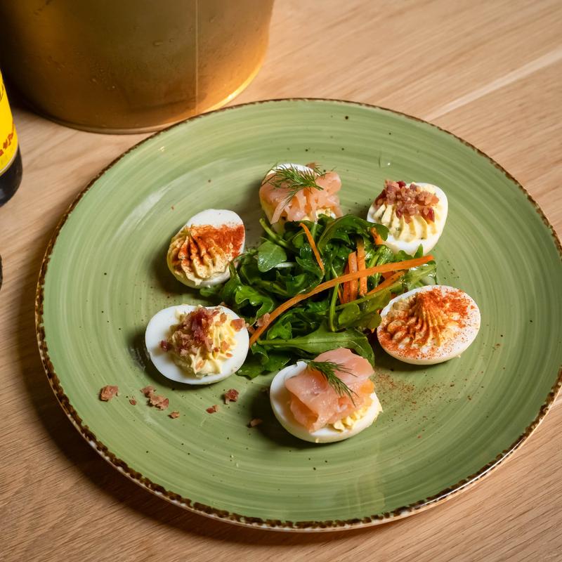 Served 3 styles: Bacon Bits, Smoked Salmon, and Traditional