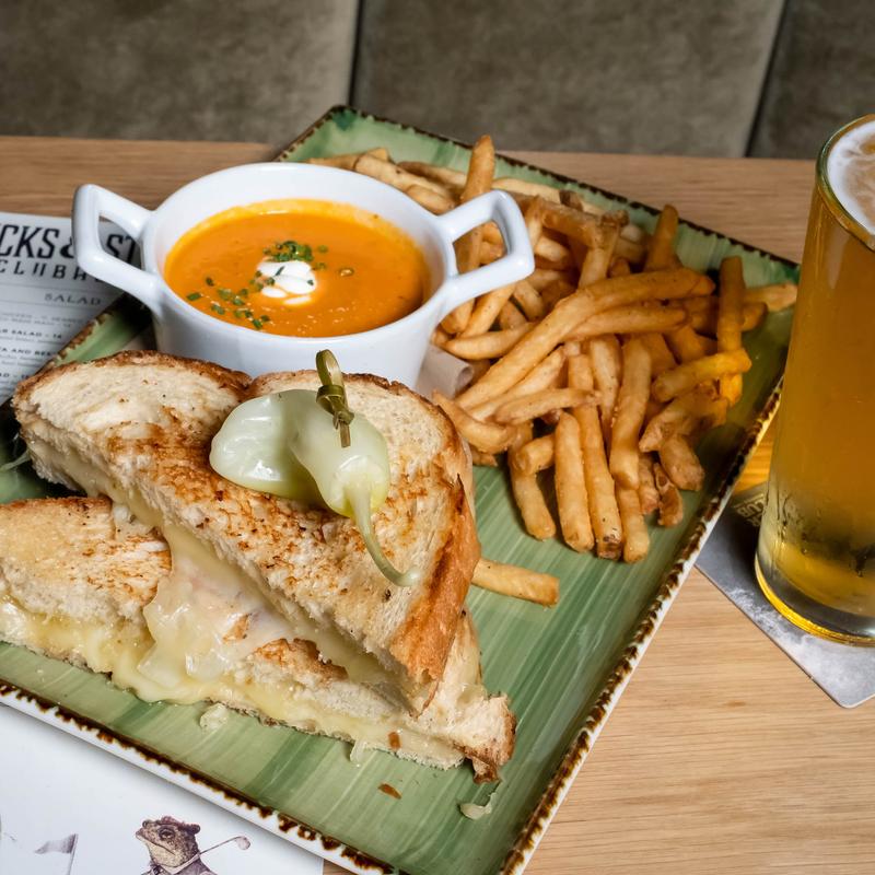 White cheddar cheese melted on sourdough bread. Served with a cup of our house-made tomato soup